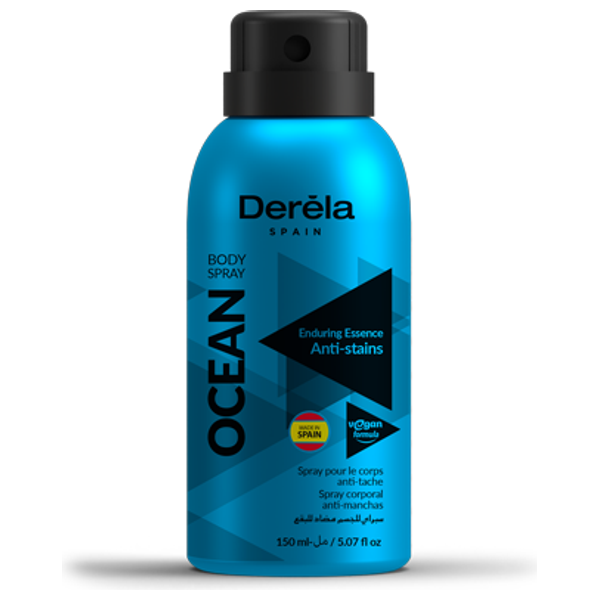 Derela Spain Ocean Body Spray offers a refreshing Ocean scent with a plant-based formula that helps reduce body odor without leaving marks on clothing. It provides long-lasting protection and dries quickly for everyday use. Bottle size is 150 ml, making it convenient to carry and reapply as needed.