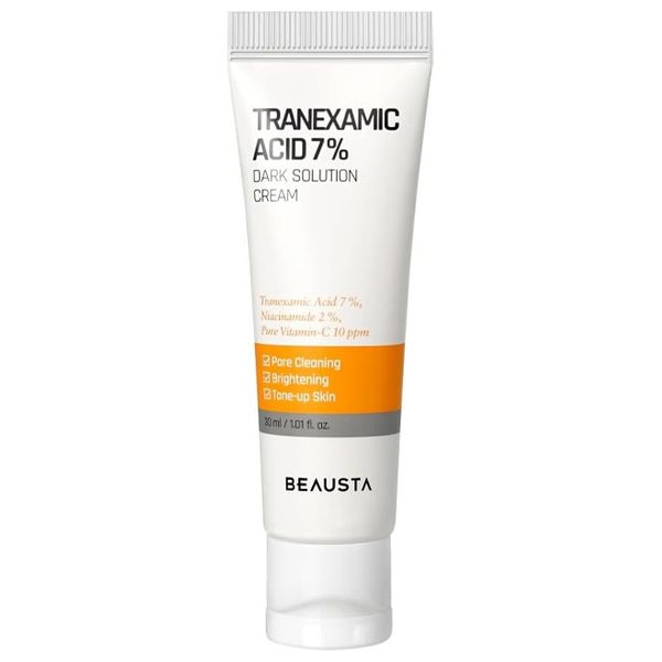 Derma Factory Tranexamic Acid 7% Dark Solution Cream targets hyperpigmentation with 7% tranexamic acid, Niacinamide 2%, and pure Vitamin C. It helps brighten, even skin tone, and refine texture while supporting pore cleansing. The lightweight, light-yellow formula provides a subtle tone-up for a radiant complexion.