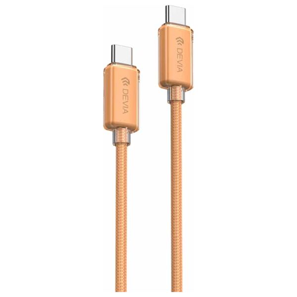 Devia USB-C to USB-C PD cable provides 60 W fast charging and data transfer. The 1.5 m woven cable offers durability and flexibility, and the CE/ROHS certified design comes in orange for easy identification.