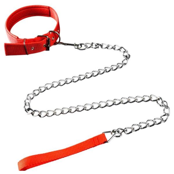 Durable nylon dog collar and leash, adjustable, provides security and stability during daily walks and training.