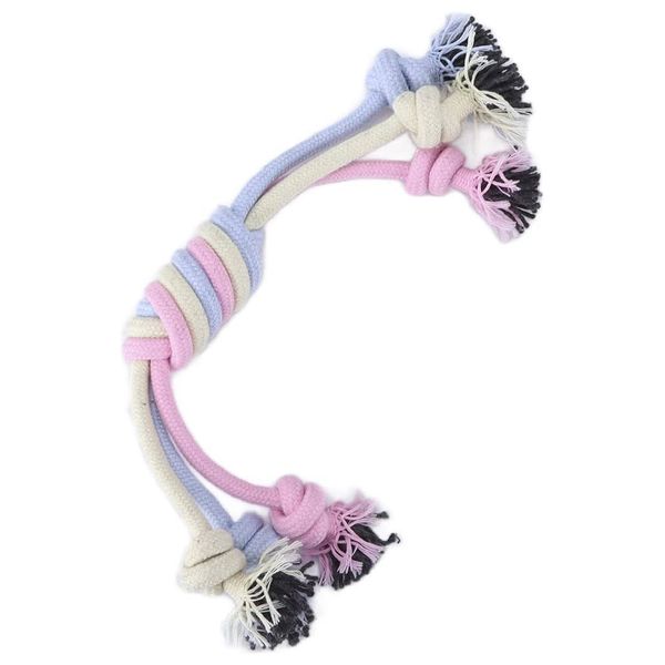 Made of braided cotton rope with sturdy knots and multiple strands for biting and chasing, supports activity and oral health, bright colors add visual interest, easy to clean and suitable for indoor use