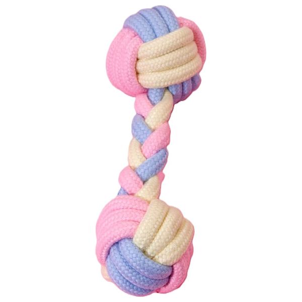 Made of durable cotton with knots on both ends for a safe and interactive chewing experience, suitable for indoor activity and play