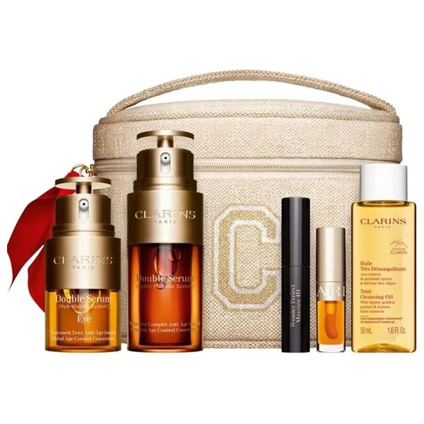 This makeup and skincare set contains all the essentials for flawless, younger looking skin, including: - 30 ml serum targets visible signs of aging using 21 of the most powerful anti aging plant extracts. - Double eye serum 20 ml for the eye area. - 3 ml mascara that provides volume, length and curl to lashes, visibly improving their length and thickness a little more every day. - Lip oil 1.4 ml works to enhance and lighten the lips while caring for them with its moisturizing and nourishing formula. - All in one cleansing oil 50 ml that turns into a creamy milk when applied to gently remove all makeup residue and impurities.