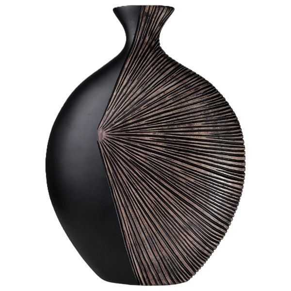 Featuring a matte black body with a brown-bronze radial pattern on one side, at 44cm tall, it makes a bold focal point in modern decor and complements dried or fresh flower arrangements.