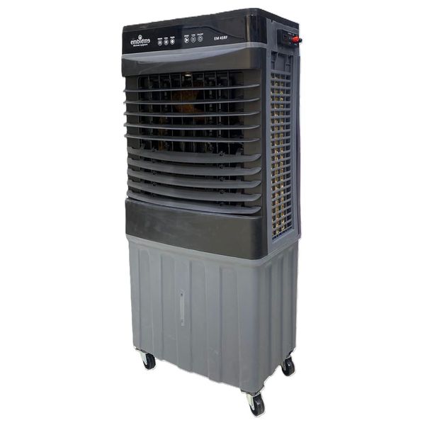 Stay cool even during power outages with the Embleme EM 45RF portable air cooler. Featuring a dual-operation system, this unit runs efficiently on direct electricity or battery power. Its sleek, space-saving vertical design makes it perfect for any room, while the heavy-duty wheels ensure effortless mobility. Enjoy intelligent air distribution through adjustable louvers and simple operation with an intuitive top-mounted touch control panel. Designed for quiet and economical cooling, it helps maintain a comfortable environment without high noise levels.