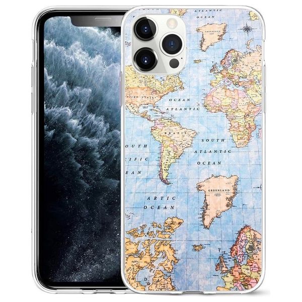 حافظة هاتف رائعة من السيليكون الناعم تتميز بتصميم خريطة العالم المطبوعة بالأشعة فوق البنفسجية لجهاز آيفون 13