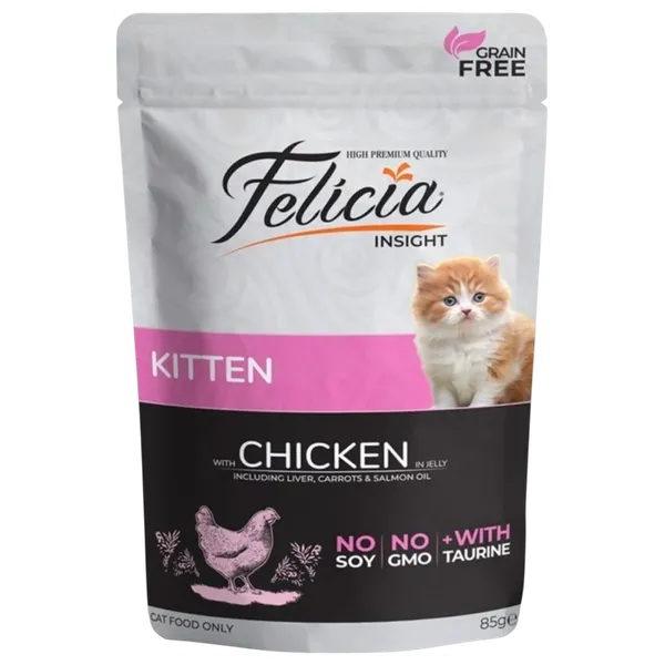 Provides complete daily nutrition for growing kittens. Made with high-quality chicken for easily digestible protein, it supports healthy growth and development of muscles, bones, and teeth. Enriched with taurine, vitamins, and minerals for immunity and vitality. The soft texture aids hydration and urinary tract health. Soy-free, GMO-free, and grain-free.