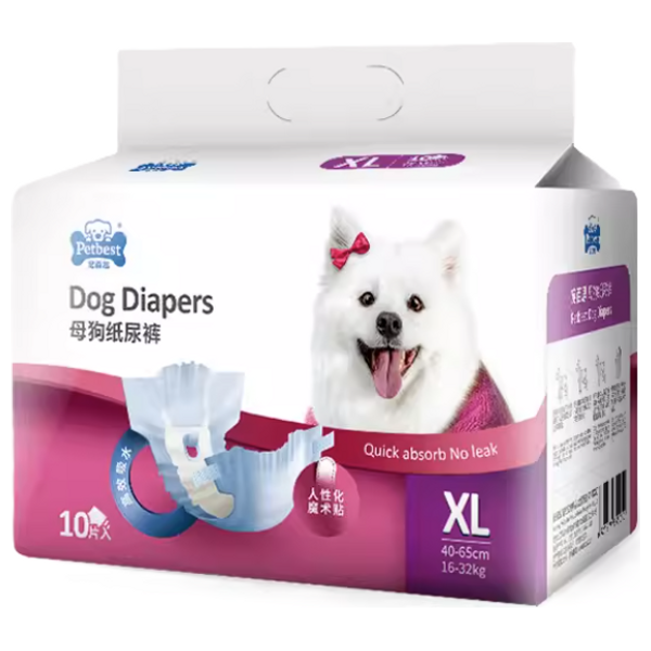 Large dog diapers provide fast absorption and leakage protection for dogs weighing 16-32 kg and with a bridge circumference of 40-65 cm