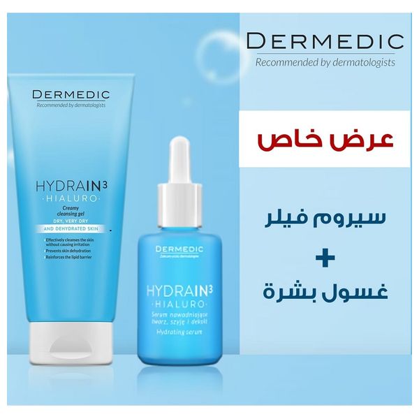 Hyaluronic acid moisturizing and caring set, consisting of a cleanser and moisturizer, serum drops to moisturize the skin, fill fine lines and protect the skin from aging.