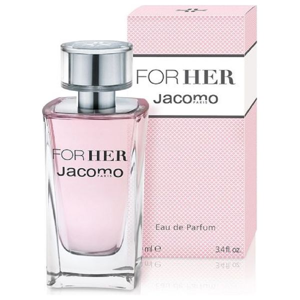 Jacomo For Her is a feminine floral-amber fragrance for women. It opens with fresh Hyacinth, Bergamot, and Lily of the Valley, followed by a floral heart of Hawthorn, Rose, Ylang Ylang, and Heliotrope, and finishes with a warm base of Cedarwood, Sandalwood, Amber, and Tonka Bean. Suitable for daily wear and evening occasions.
