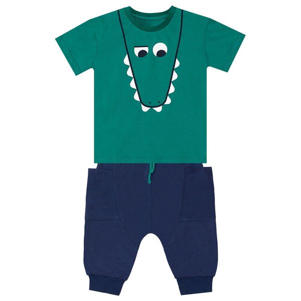 2 piece set. Cotton jersey, green t-shirt. A funny crocodile face print on. Cotton, harem style capri pants. Has two big pockets on sides. Elasticated waistband and strings on. All Denokids Products are manufactured within the Kids Safety Guideline. Has been inspected by metal detectors., Material Top: 95% Cotton 5% Elastane - Bottom: 95% Cotton 5% Elastane, Washing ins. Machine wash at 30°C. Wash inside out. Do not bleach. Do not tumble dry. Iron backside on low heat.