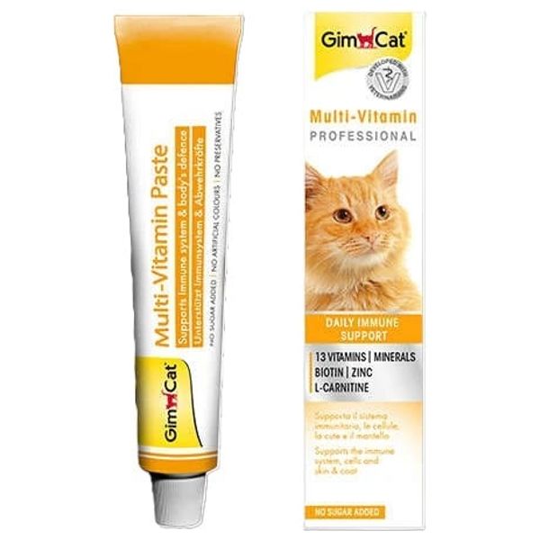 This multivitamin paste provides a daily supplement that supports immunity, cellular health, and healthy skin and coat in cats. It contains 13 vitamins and minerals, including biotin, zinc, and L-carnitine.