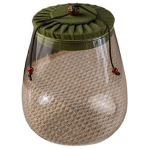 An elegant glass storage jar with a fabric lid that brings rustic charm to the kitchen. The clear glass allows quick identification of contents, making it suitable for storing sugar, spices, or other small pantry items