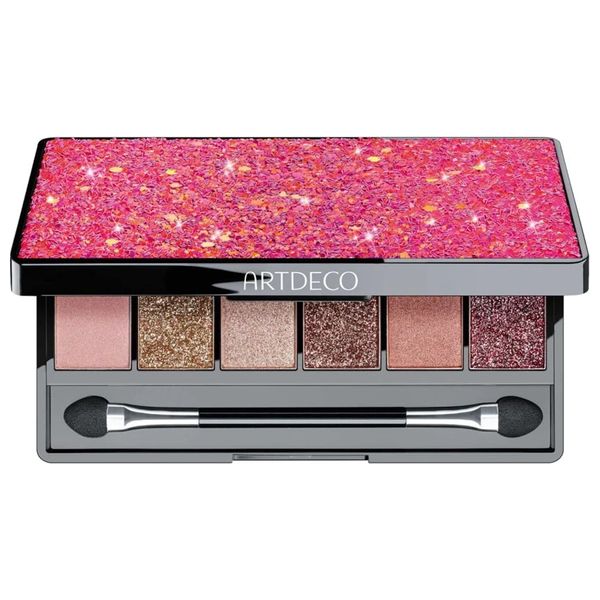Glitter eye shadow palette, consisting of six shimmering shades of pink, three mother of pearl shades and three shimmery shades that you can use to create dramatic smoky eyes and a radiant look, the shadows have a soft texture and a creamy and silky touch that reflects the light beautifully.