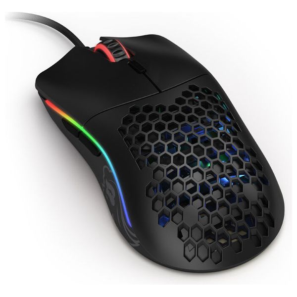 Glorious Model O is a wired gaming mouse designed for ultralight precision. It features a honeycomb shell to reduce weight to 58 g, six programmable buttons, and RGB lighting for vibrant visuals. Suitable for medium and small hands, it offers comfortable handling and responsive performance during long gaming sessions.