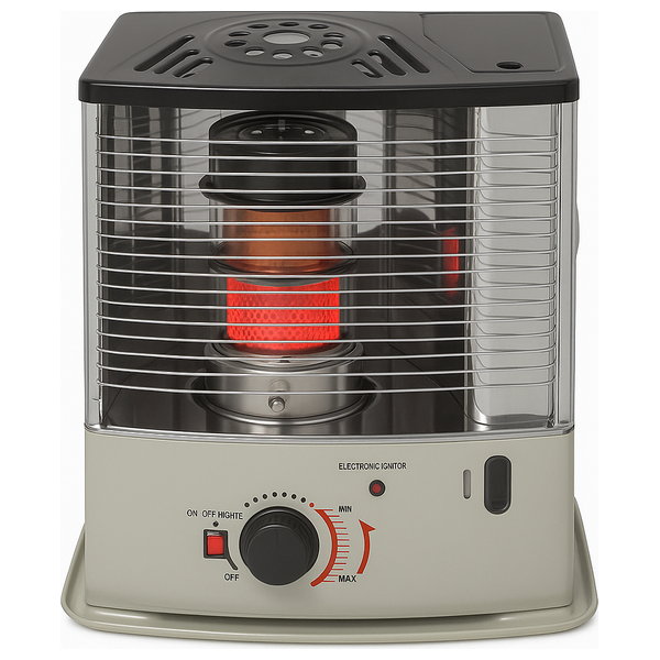 It runs on oil and features electronic ignition and temperature control for ease of use. Thanks to its removable 5-liter fuel tank, low fuel consumption of 0.25-0.3 liters/hour, and heating capacity of up to 10,500 BTU/hour, it offers a heating capacity of up to 10,500 BTU/hour.