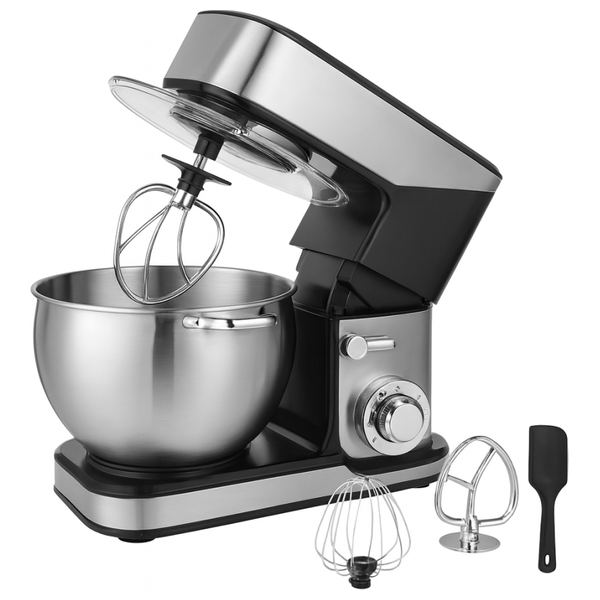Large 10-liter capacity suitable for large quantities, powerful motor for efficient kneading and whipping, multiple attachments: kneading hook, whisk, mixing paddle, rust-resistant stainless steel bowl, stable design, easy to use and clean
