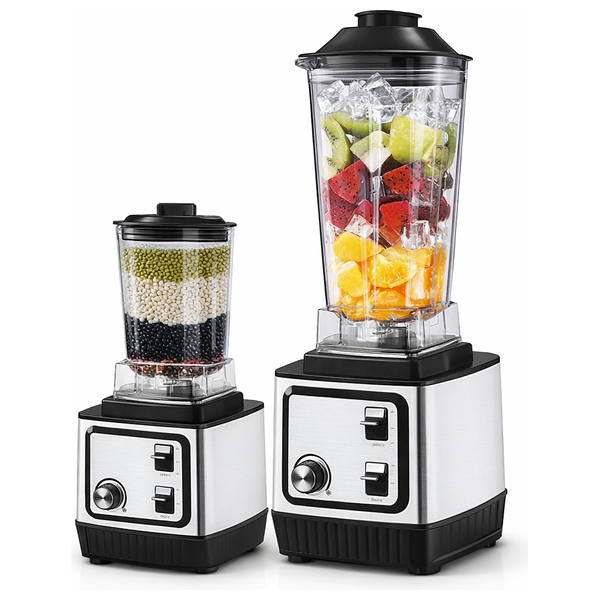 A powerful, high-performance electric blender, ideal for quickly and efficiently preparing smoothies and grinding dry ingredients. Equipped with a powerful motor and sharp stainless steel blades, it features a large jug for smoothies and a smaller jug for dry ingredients. Multiple speed settings with a pulse function make it suitable for fruits, vegetables, nuts, and grains. The stable base ensures safe use and is easy to disassemble and clean.