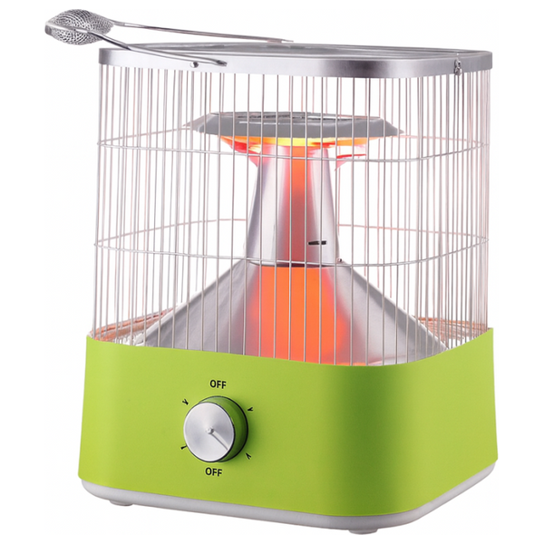 This 1000-watt electric heater provides efficient and fast heating in small spaces. It features a compact and elegant design, a metal safety grille for protection, and a temperature control knob. It comes with a 2-meter cord.