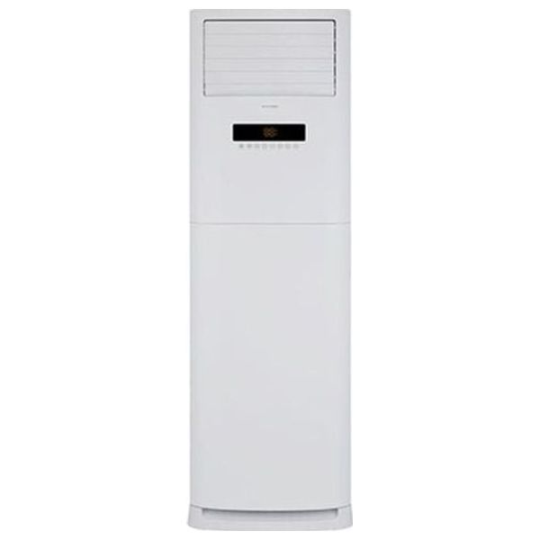 This is a Gree 3-ton floor-standing split AC, featuring twin indoor fans for powerful and rapid air distribution in large halls and spaces up to 80 square meters. It is designed with a T3 tropical compressor to withstand extreme heat and operates on a heat/cool system using energy-efficient R410A gas, while providing 4-way air swing to ensure cooling reaches every corner of the room with high efficiency.