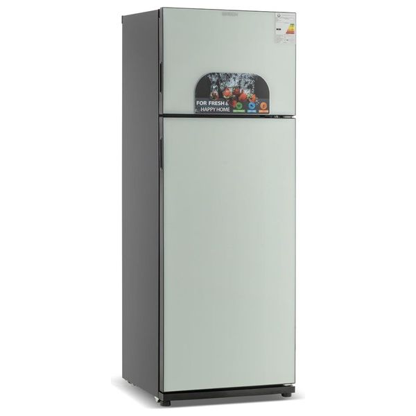 Green Smart refrigerator with an inverter compressor and an external top freezer. It offers a generous 20 ft³ capacity, suitable for family needs, with rapid freezing to help preserve food quality. A dedicated vegetable drawer keeps fruits and vegetables organized, while the modern black finish complements contemporary kitchens. The cooling system distributes air evenly for consistent temperatures, and it comes with a two-year warranty. Dimensions are 70 cm wide by 190 cm tall, designed to fit medium to large kitchen spaces.