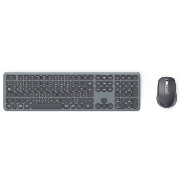 Features:Multi-Device: Connect up to 3 devices via 2.4 GHz (USB-A) and Bluetooth 5.2.Quiet Keyboard: Smooth typing with ergonomic scissor keys.AI Button: Quick access to AI assistants.Multimedia Keys: F key functions with Fn lock.Eco-Friendly: Over 20% recycled materials.Ergonomic Mouse: Quiet, 6 buttons, adjustable DPI (800/1200/1600).Technical Specifications:Keyboard Layout: English/Arabic LayoutConnectivity: USB-A receiver for 2.4 GHz RF; Bluetooth 5.2Operating Range: Up to 10 metersPower Supply: Four AAA batteries (included)Keyboard Dimensions: 30.1 cm (W) x 1.7 cm (H) x 12.9 cm (D); Weight: 558 gMouse Dimensions: 6.8 cm (W) x 3.6 cm (H) x 9.8 cm (D); Weight: 65 gCompatibility: Windows 10/11, macOS 11 or later, Android 8.0 or higher, iOS 14 or higher, iPadOS 14 or higher
