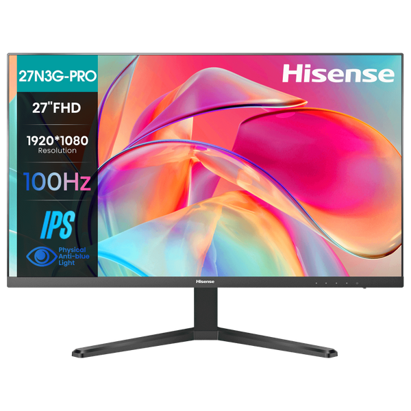 The monitor is 27 inches with a resolution of 1920 × 1080 pixels, a 100 Hz refresh rate, and a 5 ms response time. It features an IPS panel with 280 cd/m² brightness, a 1000:1 contrast ratio, and color coverage of 90% DCI-P3, 99% sRGB, and 95% Adobe RGB, with 8-bit/16.7 million color depth and a 178° viewing angle. Its dimensions are 613.5 × 193.2 × 458.1 mm with the stand and 613.5 × 44.6 × 362.5 mm without, weighing 4.1 kg with the stand. The monitor is black, has HDMI and VGA ports, uses LED backlighting, and is powered via an external adapter.