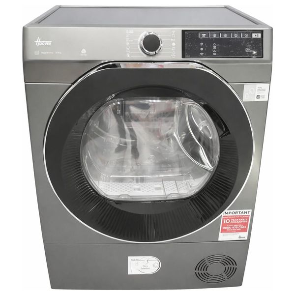 The Hoover 10 kg Heat Pump Dryer offers advanced fabric care with energy-efficient drying technology. Featuring hOn app connectivity, you can remotely control and monitor your laundry cycles, access over 30 additional programs, and get maintenance tips. The integrated Sensor Drying system detects moisture levels to stop the cycle at the perfect dryness, preventing over-drying and saving energy. Designed for convenience, it includes a 24-hour delay start, an anti-crease function for easier ironing, and the AquaVision water tank conveniently integrated into the door for easy monitoring and emptying.
