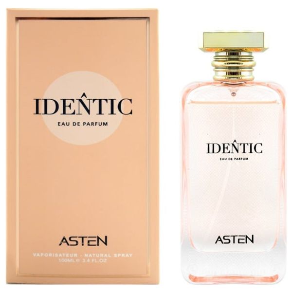 Identic by Asten for Women offers a 100 ml Eau de Parfum with a clean floral profile and subtle chypre hints. The fragrance opens with bergamot, develops with Turkish rose, May rose, and Indian jasmine grandiflorum, and settles on a warm base of cedarwood, vanilla, and patchouli. The bottle is slender and comfortable to hold, blending elegance with everyday wear.