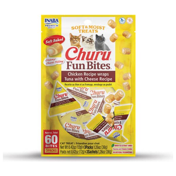 Contains a creamy inner filling and a baked chicken paste outer, free from grains, preservatives and artificial colors, contains 69% moisture to support hydration, contains vitamin E to support the immune system, contains green tea extract as an antioxidant, contains only about 17 calories per piece