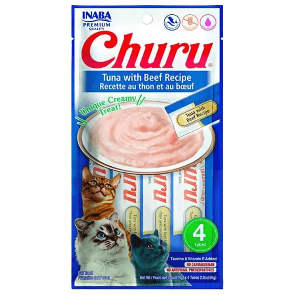 Offering a creamy tuna and beef flavor, each tube has a smooth, easy-to-eat texture. Perfect for treats or training, these treats are fortified with vitamin E and free from artificial preservatives and carrageenan.
