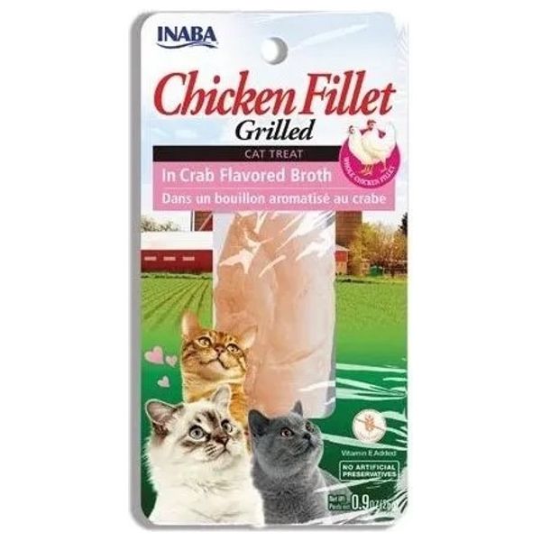 Inaba Cat Treat made with grilled chicken strips in crab-flavored broth