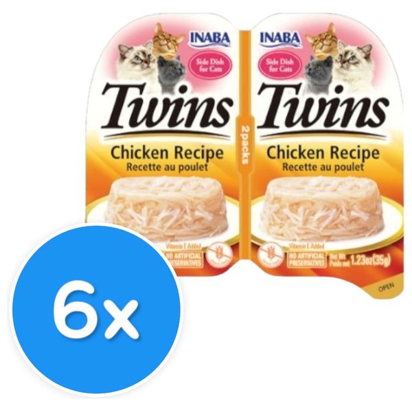 Inaba Twins Chicken Recipe cat food is available in a convenient twin pack. Its main ingredient is real chicken. This food provides protein-rich nutrition for cats.