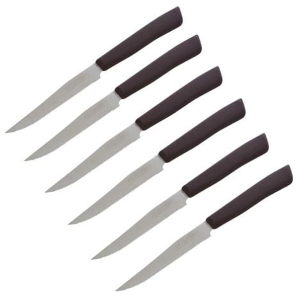 The INOXBONOMI BLS 6 Steak Knives provide reliable performance for everyday dining. Each knife features an 11 cm stainless steel blade with 0.8 mm thickness and a comfortable brown PP handle, offering a balanced grip and lasting durability.