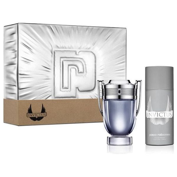 Gift set for men, contains flavors of wood, consisting of Invictus eau de toilette 100 ml and deodorant 150 ml.