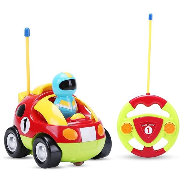Featuring a cartoon driver character, easy forward and backward movement, and a steering wheel-shaped remote control, this car includes engaging sound effects, built-in music, and flashing headlights for added fun. Made from non-toxic ABS plastic with smooth edges and a flexible control antenna to minimize playtime accidents, it has been tested to be safe for children and suitable for everyday use. It's ideal as a first remote control toy to help children aged 18 months and up develop hand-eye coordination and fine motor skills.