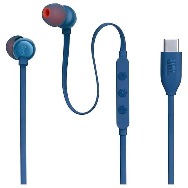 JBL Tune 310C USB-C Wired Earphones - Built-in microphone for hands-free calls - 1.2-meter durable cable - Blue