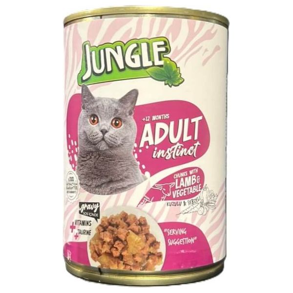 Canned cat food with lamb and vegetables is specially formulated for adult cats, featuring tender lamb pieces with vegetables in a delicious gravy, rich in essential vitamins and taurine