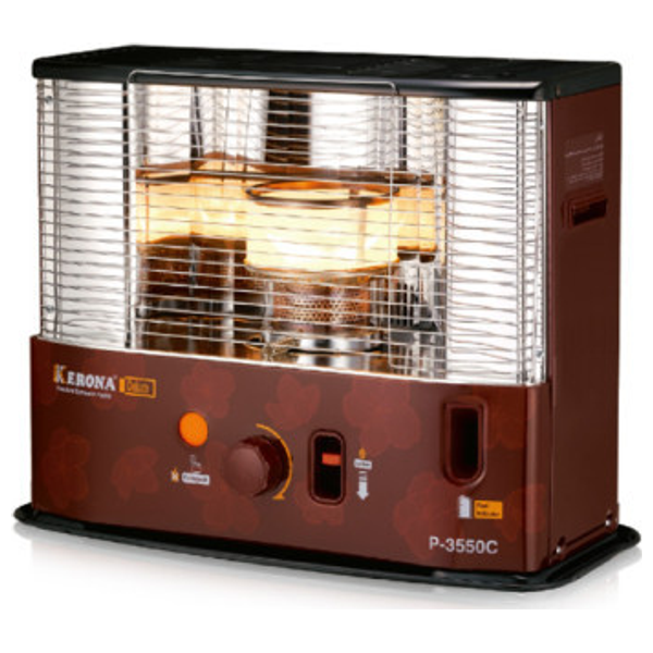 The oil heater delivers up to 12,500 BTU of heat with a 5.2-liter fuel tank and consumes 0.36 liters/hour. It includes manual ignition and automatic shut-off when tipped over.