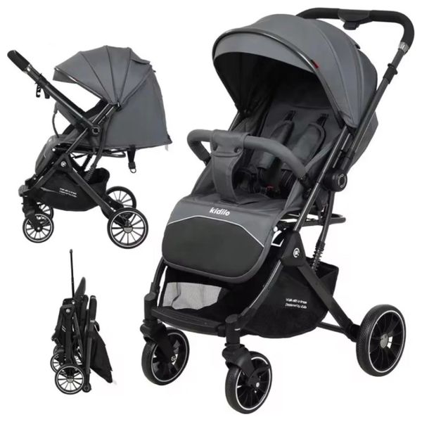 Adjustable positions - sitting and lying position, Adjustable handle for parents - can be moved forward and backward to change direction, Lightweight and durable - Easy to use, Large wheels with shock absorption - Smooth and comfortable ride, Spacious basket - Extra space for shopping and essentials, Safety belt and cover - Maximum protection