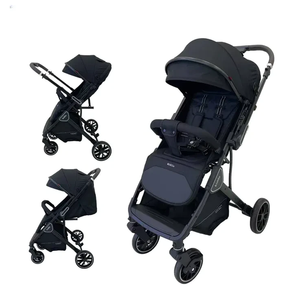 A compact and lightweight stroller that folds easily for storage in the car trunk and features a reclining seat for the child's comfort, an adjustable handle, swivel wheels for easy mobility, a safety belt, and a spacious storage basket for supplies during outings and travel.