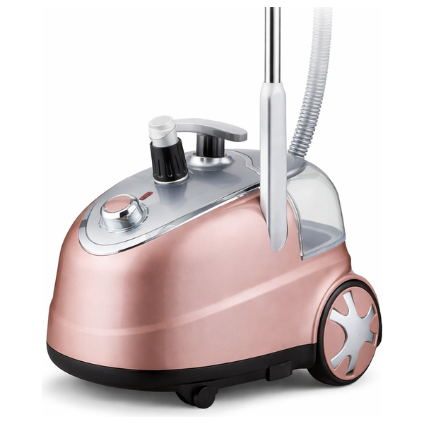 This powerful 2000W vertical steam iron removes wrinkles quickly and efficiently, suitable for all types of fabrics, including delicate and heavy materials. It features a large 2-liter water tank for extended use and heats up rapidly, ready in minutes. The steam action removes wrinkles without direct contact, and it comes with specialized attachments for different garments and fabrics. Its wheeled design makes it easy to move and use every day.