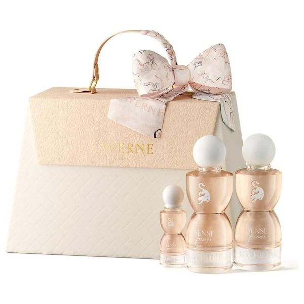 The Laverne Sense Forever Lychee Soda gift set presents a cohesive floral-fruity fragrance collection in a premium cream gift box with a delicate bow. This 4-piece set is designed for special occasions and gifting, delivering an elegant fragrance experience.