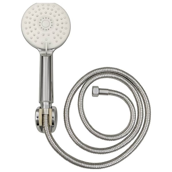 Chrome-plated metal design is rust and moisture resistant, equipped with a 1.5m stainless steel hose that provides freedom of movement, and limescale-resistant silicone nozzles for balanced water flow and easy cleaning.