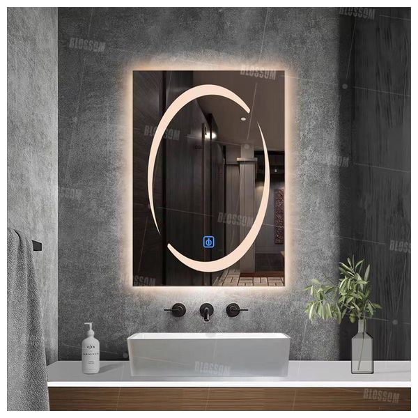 The Lazurd LED Smart Bathroom Mirror combines modern design with practical lighting. Measuring 70 x 50 cm, it features elegant oval interior lighting, a soft LED surround, three color temperatures (cool, warm, and natural), and a touch control button. The high-quality glass provides a clear reflection with energy-efficient illumination.
