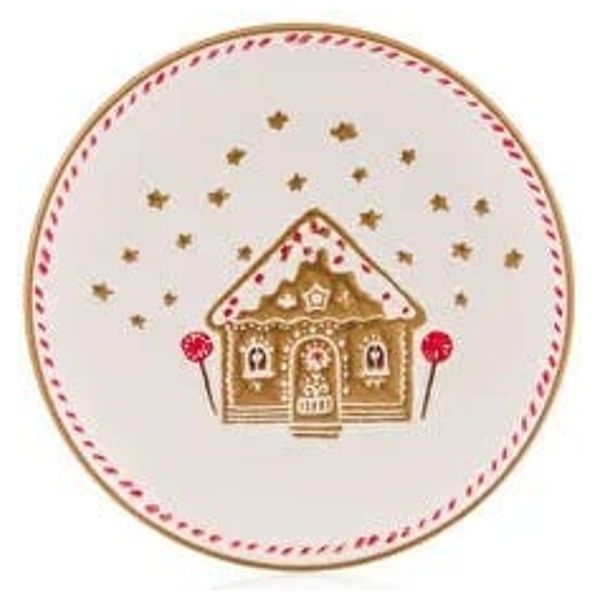 This four-piece serving plate set features a house and star pattern with a red rim. Each plate is 24 cm, suitable for everyday meals or special occasions, and coordinates well with other tableware.