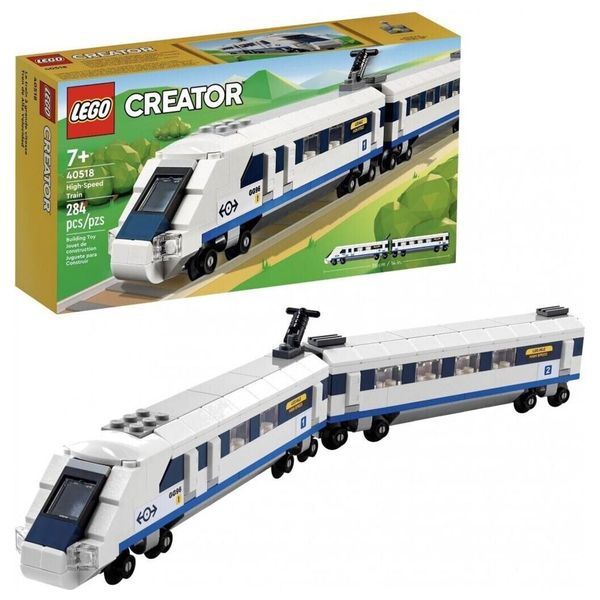 This high-speed train set lets children build and play with a detailed two-car train. The 284-piece model includes stickers to decorate four separate cars, and two sets can be combined to build a taller four-car train. The assembled train is over 6.5 cm high, 36 cm long, and 3 cm wide, making it easy to carry and play with at home or on the go. Suitable for children aged 7 and up.