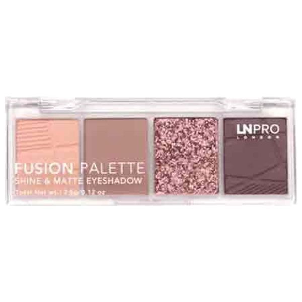 LN Pro Mauve Fusion Palette features four earthy-toned shades with both matte and shimmering finishes. The creamy texture allows smooth application and easy blending, delivering long-lasting color for neutral eye looks.