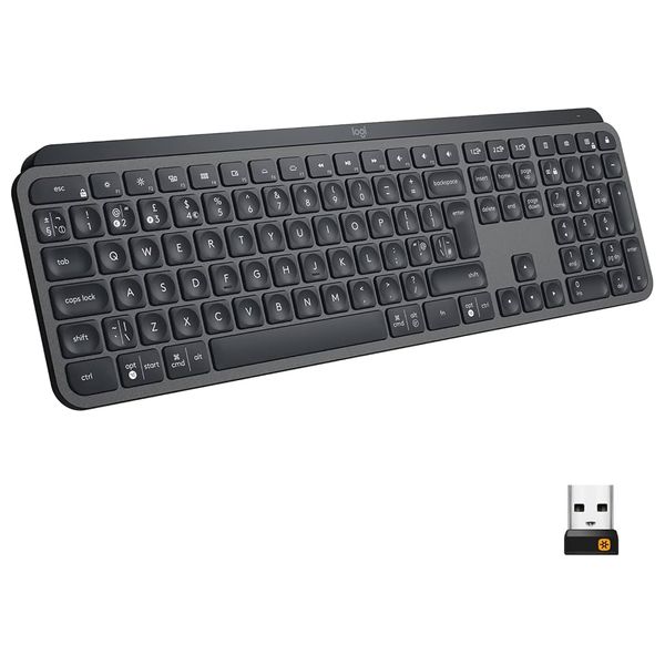Full size wireless keyboard with integrated palm rest for comfortable typing