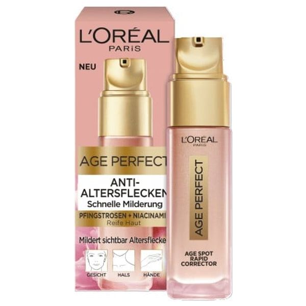 LOreal Paris Age Perfect Anti-Age Spot Rapid Corrector Serum is specifically formulated for mature skin to address age spots, uneven skin tone, and dullness. Powered by a potent blend of native peony cells and niacinamide, this lightweight serum works to brighten the complexion and visibly reduce the appearance of dark spots on the face, neck, and hands. It provides immediate hydration and comfort, leaving the skin feeling smoother and more radiant. With regular use, it helps achieve a more uniform skin tone and rejuvenates the look of mature skin.